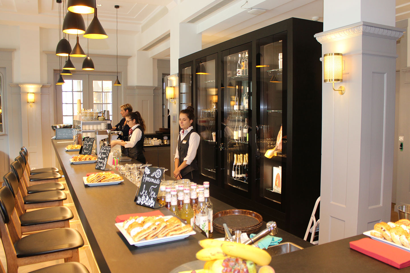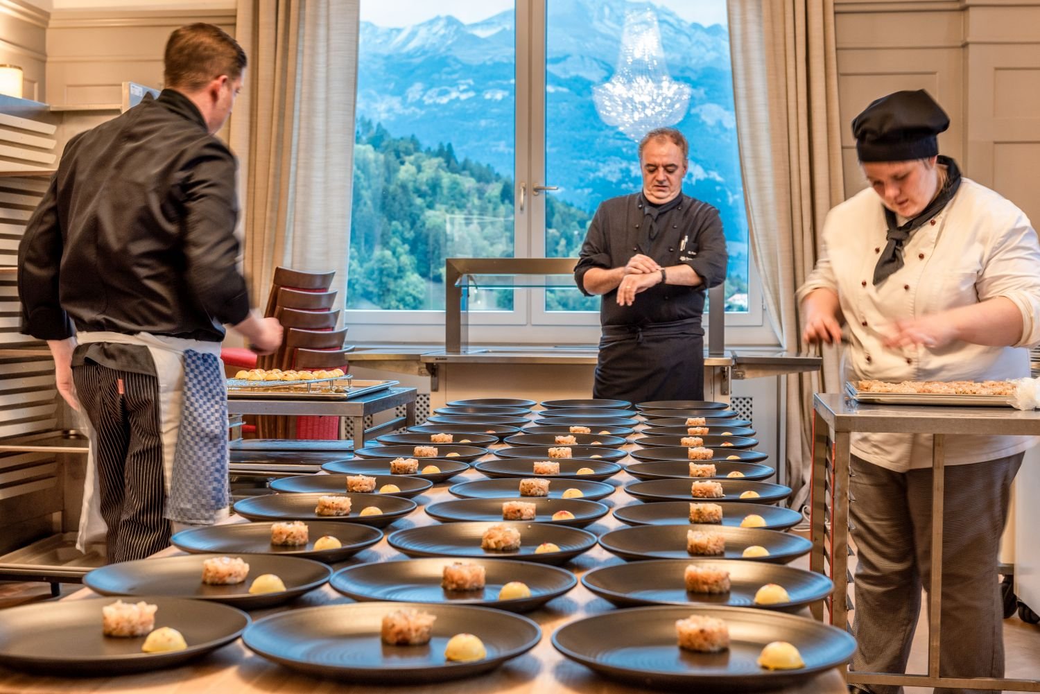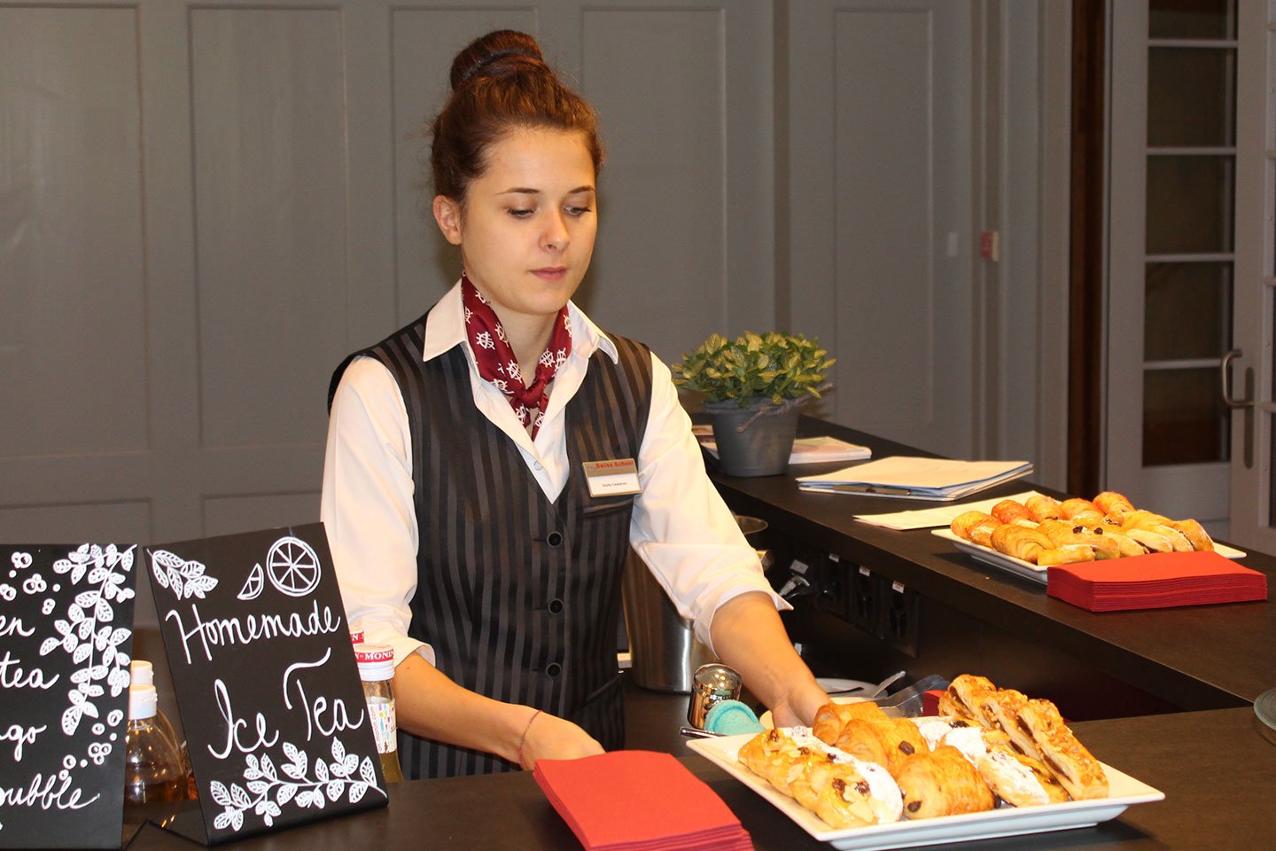 Training Restaurants: Our students rotate through their food & beverage training courses in all five of our restaurants on campus: "The Essence" is our fine-dining training restaurant where students learn to execute a Gueridon platter service and banquet service. "Campigiana" is our bistro and bar where students practice preparing drinks and quick meals such as sandwiches and burgers. Our "Umami" restaurant is dedicated entirely to Asian cuisine. The “Da Fortunat” restaurant is dedicated to regional Swiss cuisine. Our self-service restaurant, called “The Market”, teaches students how to set up and serve in a buffet-style restaurant with a live cooking station.