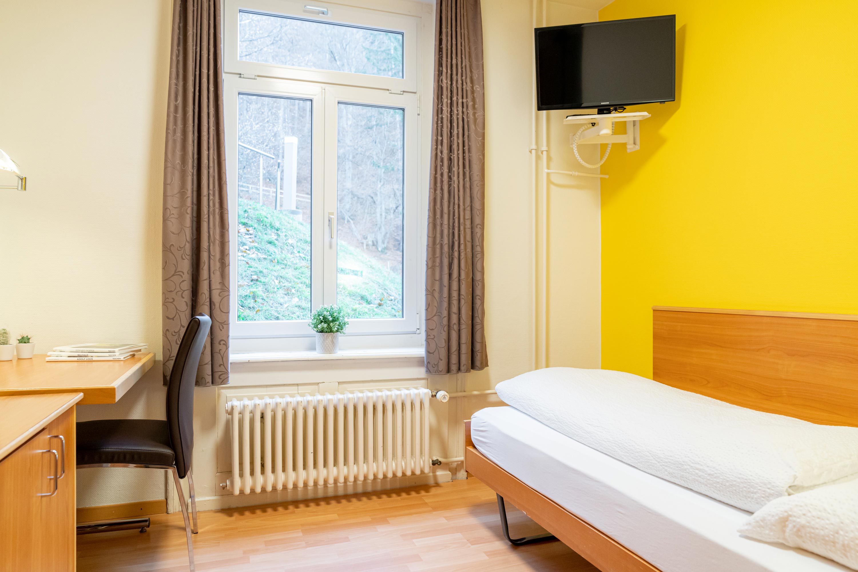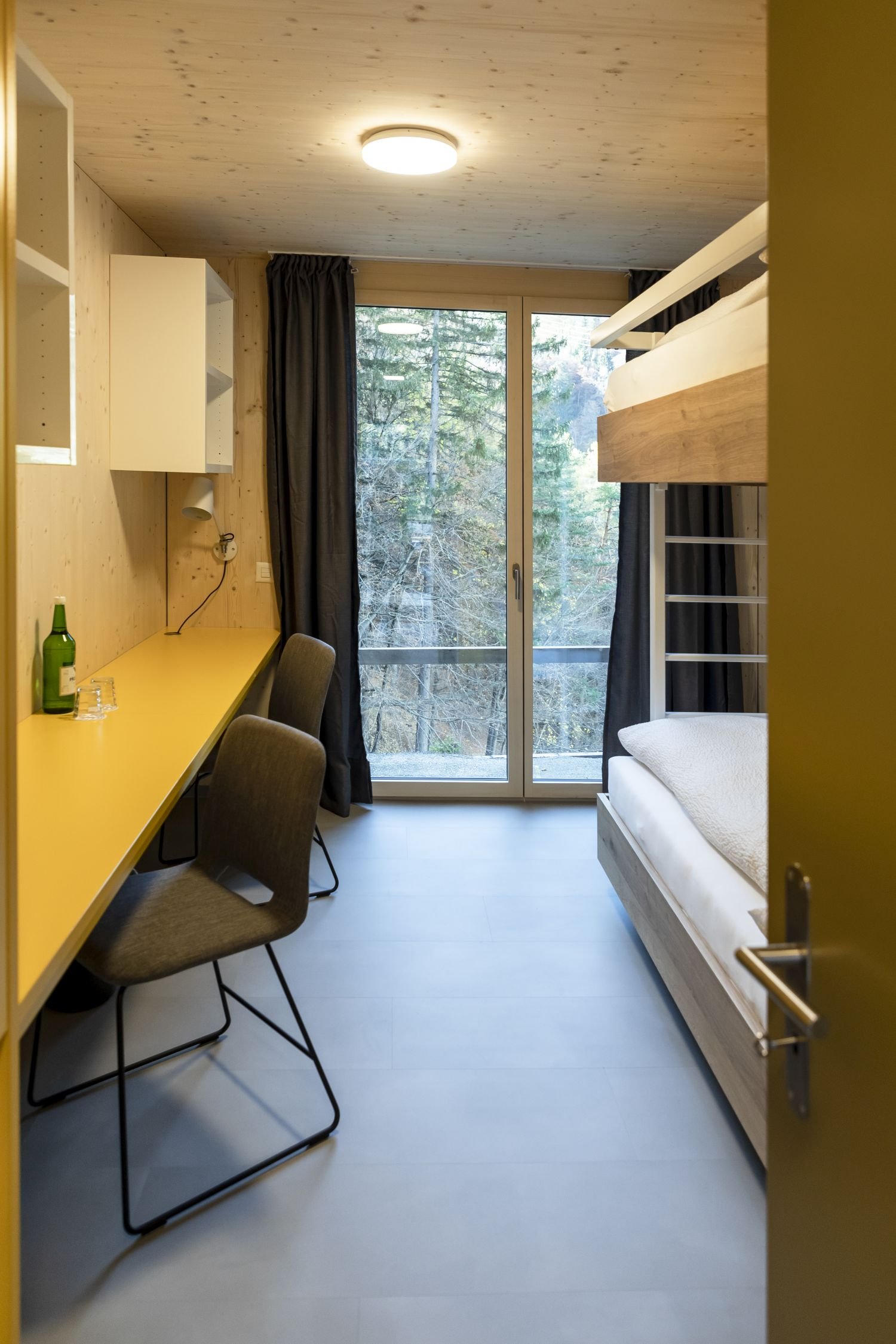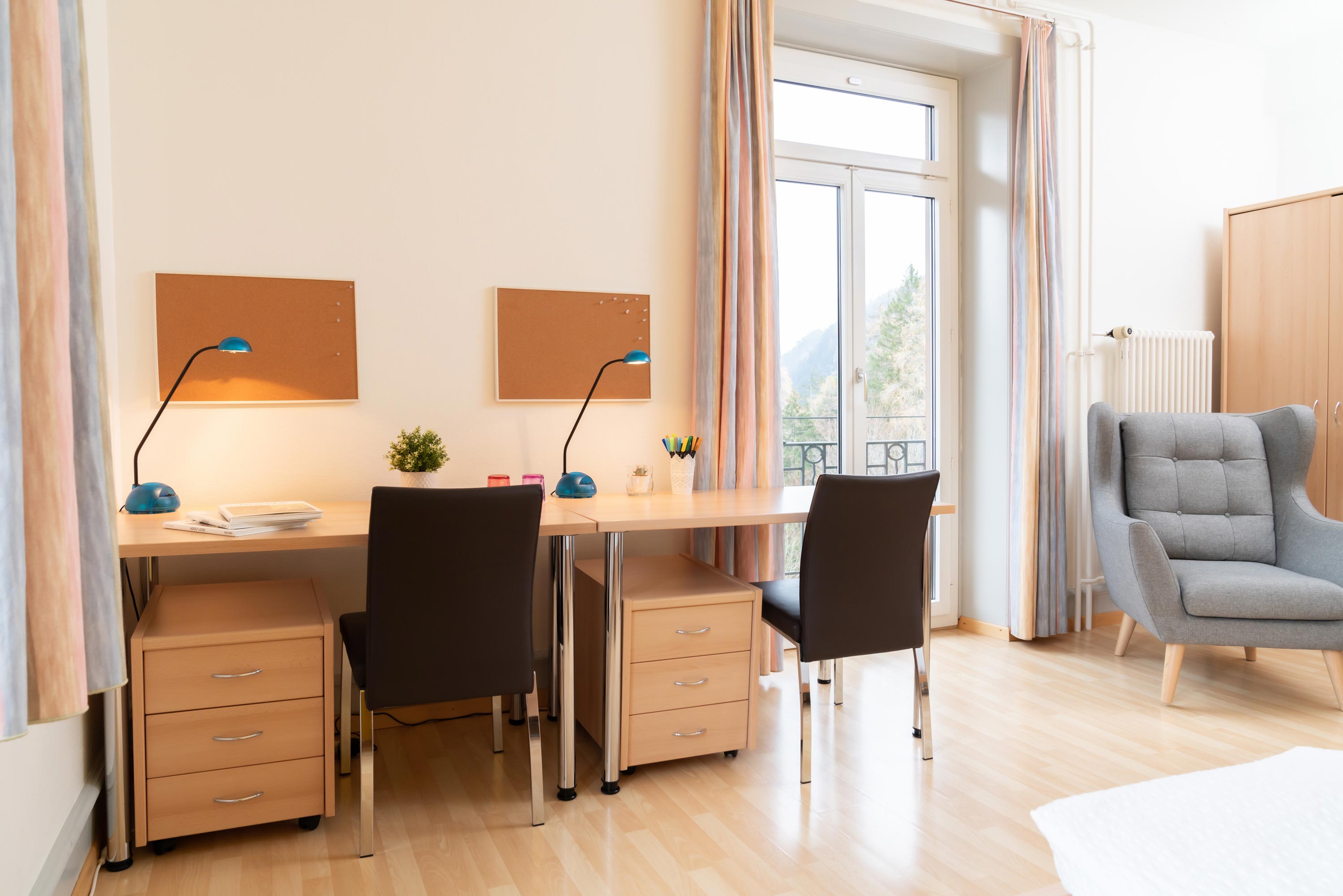 From your room in Campus Passugg, you can enjoy a fascinating view of the mountains and forests and watch the seasons change. Around 160 single and double rooms are available for our students, and we are continuing to expand.