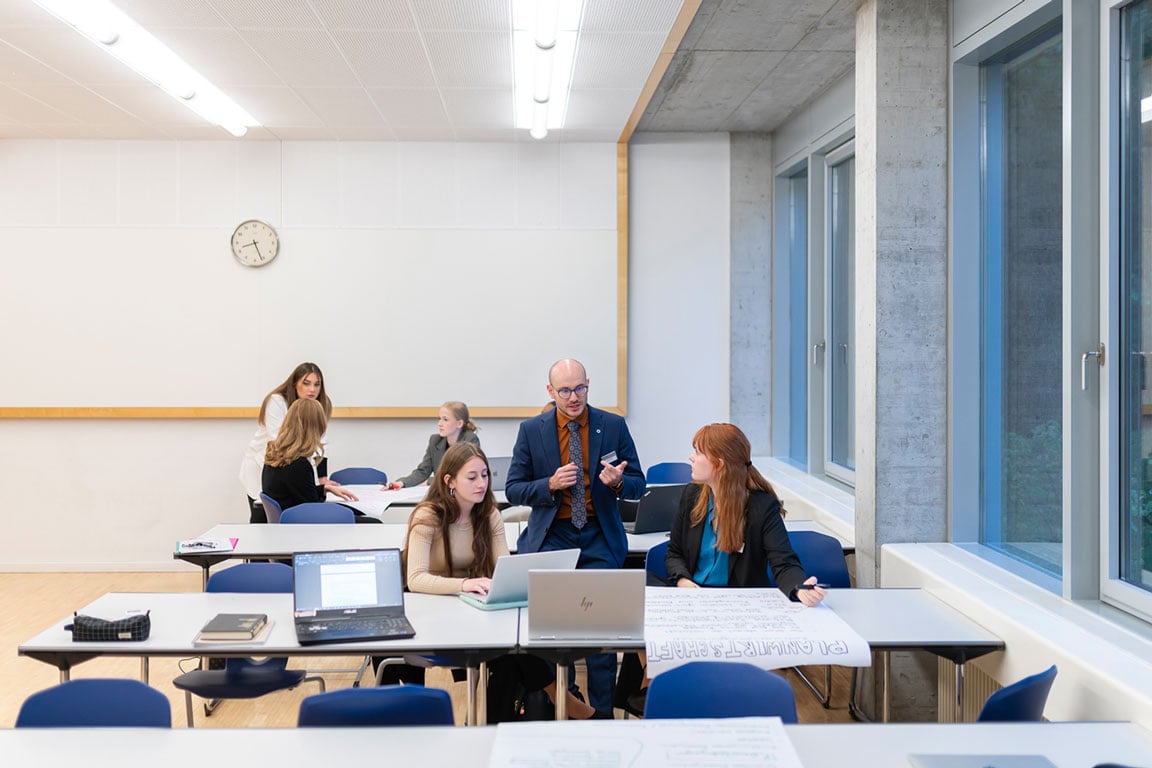 Group rooms: No matter the industry or company: teamwork is essential. EHL Campus Passugg students learn how to work successfully in teams and how to manage them. Team and group work play a central role in hotel management studies. Various group rooms and attractive meeting points are available for this purpose.