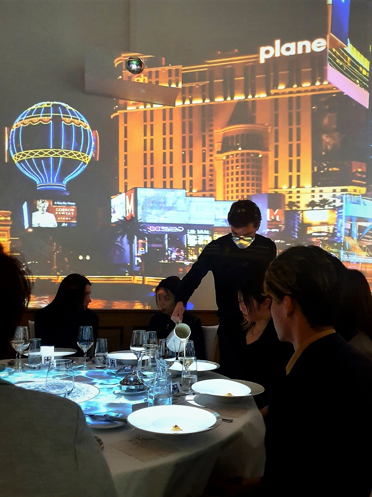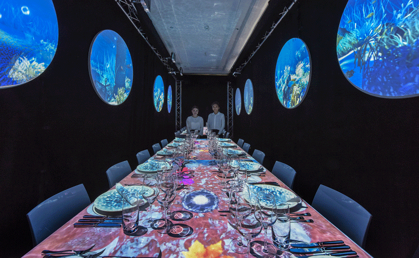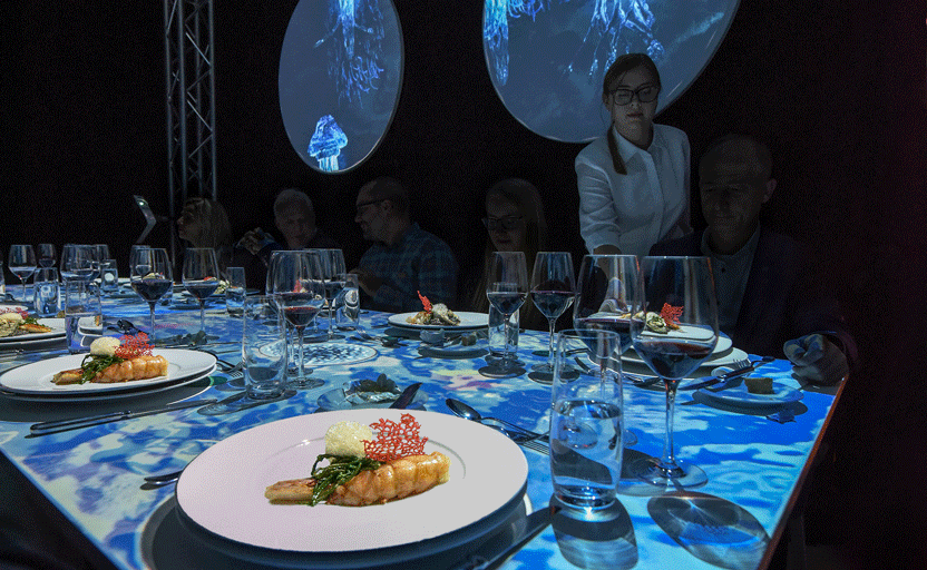 Animations, projections, sound and scent effects appeal to all senses, creating an unprecedented gastronomic performance.