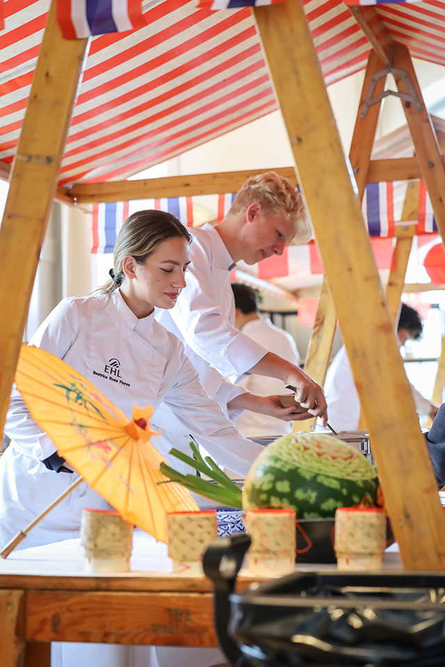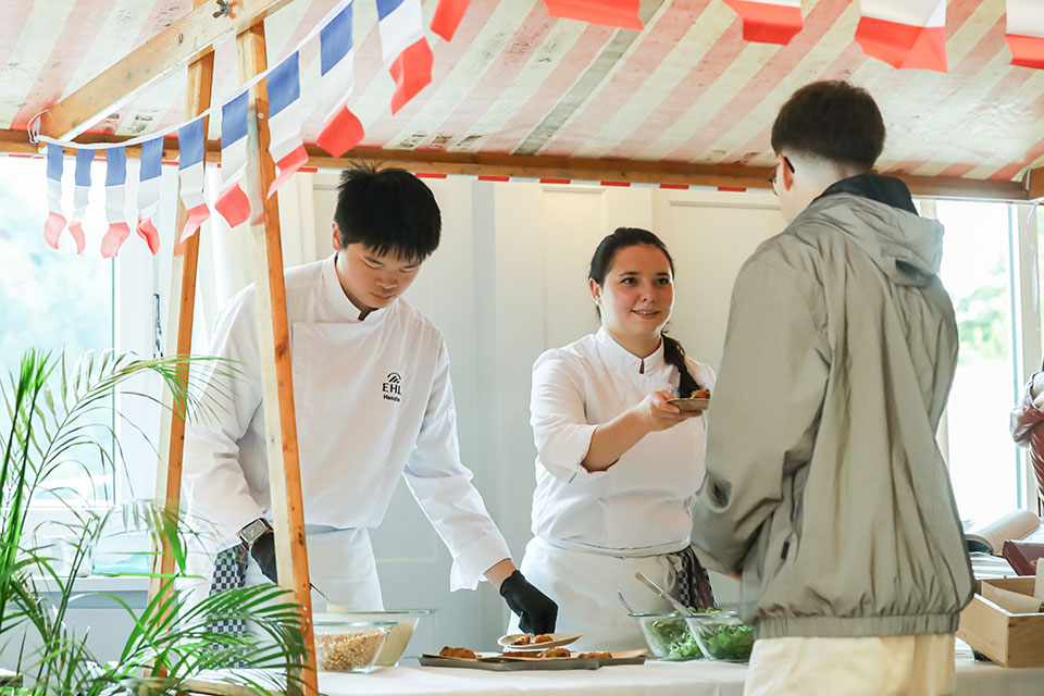 Experience a culinary world tour at EHL Hotel School Passugg. At the Food Festival, students from around the world serve authentic specialties from their home countries – freshly prepared, creatively interpreted, and presented with passion.